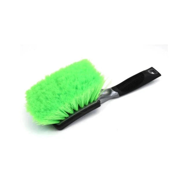 Escova ergonómica para a lavagem de jantes. Fabricada com pontas de poliéster macio que não risca. Os fios são resistentes a detergentes. O punho e as bordas da escova estão