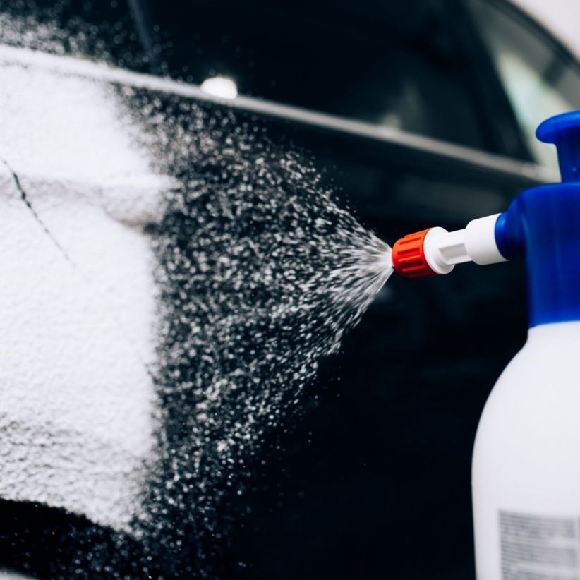 Um spray de espuma de pressão manual para lavagem de carros. É uma solução perfeita para pessoas que não têm acesso a uma lavadora de alta pressão. Permite a aplicação de espuma ativa e o amolecimento eficaz da sujidade durante a lavagem do carro.
