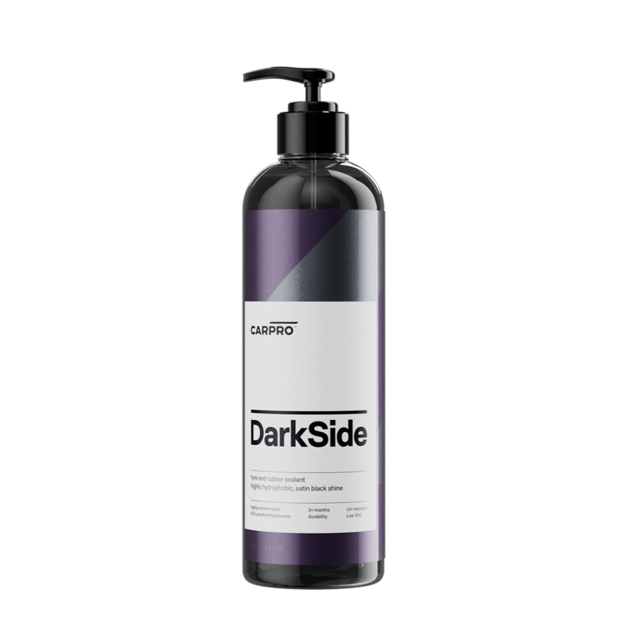O DarkSide da CarPro é um novo selante pronto a usar para pneus e borrachas. A formula do DarkSide com 60% de polidimetiloxano permite uma aplicação super rápida e fácil com o aplicador de pneus ou com o aplicador de microfibras da CarPro, deixando uma superfície com um belo aspecto de brilho satinado.