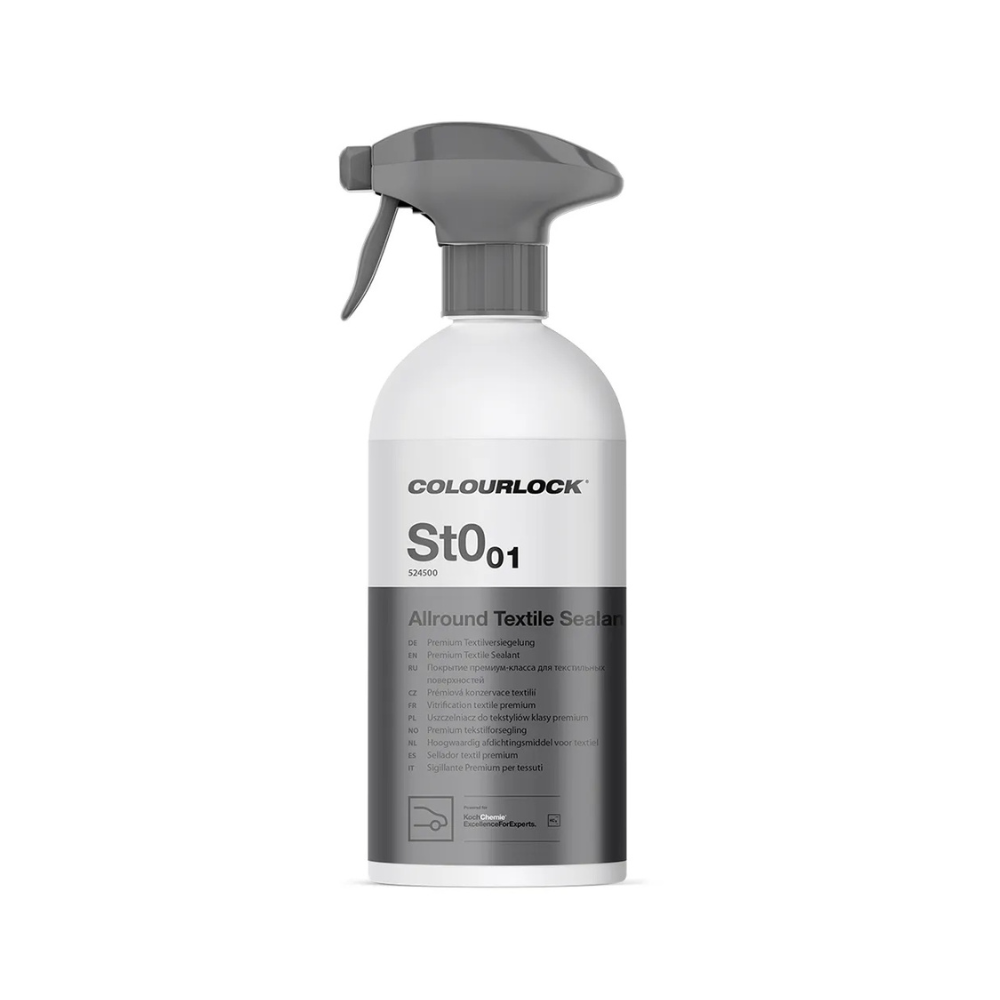 Koch Chemie Colourlock Allround Textile Sealant (St001), com a sua agradável fragrância fresca, é adequado para tratar os têxteis do interior e exterior (ideal para as capotas em lona dos carros descapotáveis). O seu acabamento garante um efeito de limpeza fácil e uma longa vida útil.