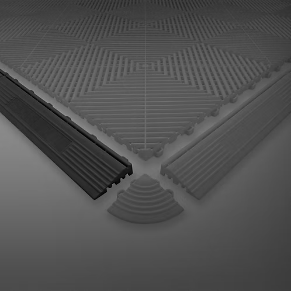 Pavimento modular colorido, ideal para compor garagens e estúdios, concedendo uma aparência elegante e cuidada.